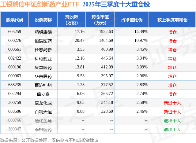本站消息,日前工银瑞信中证创新药产业ETF基金公布三季报证配所配资,2025年三季度最新规模1.34亿元,季度净值涨幅为22.45%。